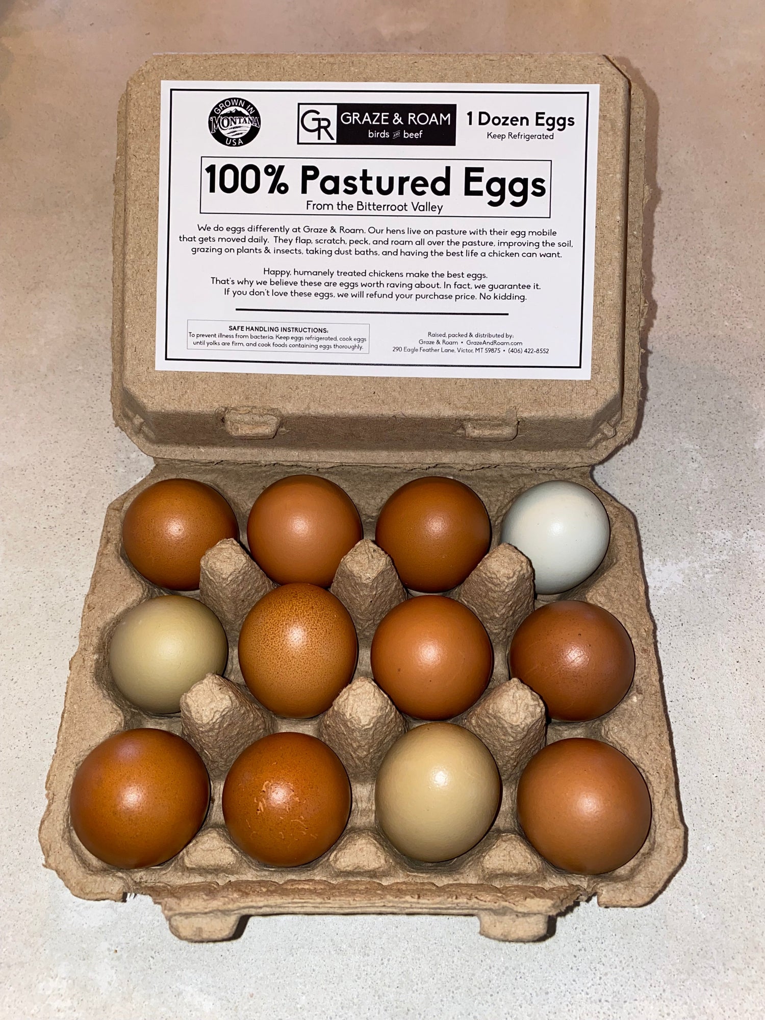 Our hens spend their days on pasture, scratching, hunting, and foraging. The...
